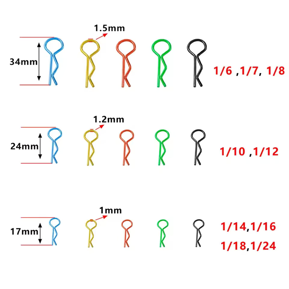 Bulk set of body pins for a range of different scales.