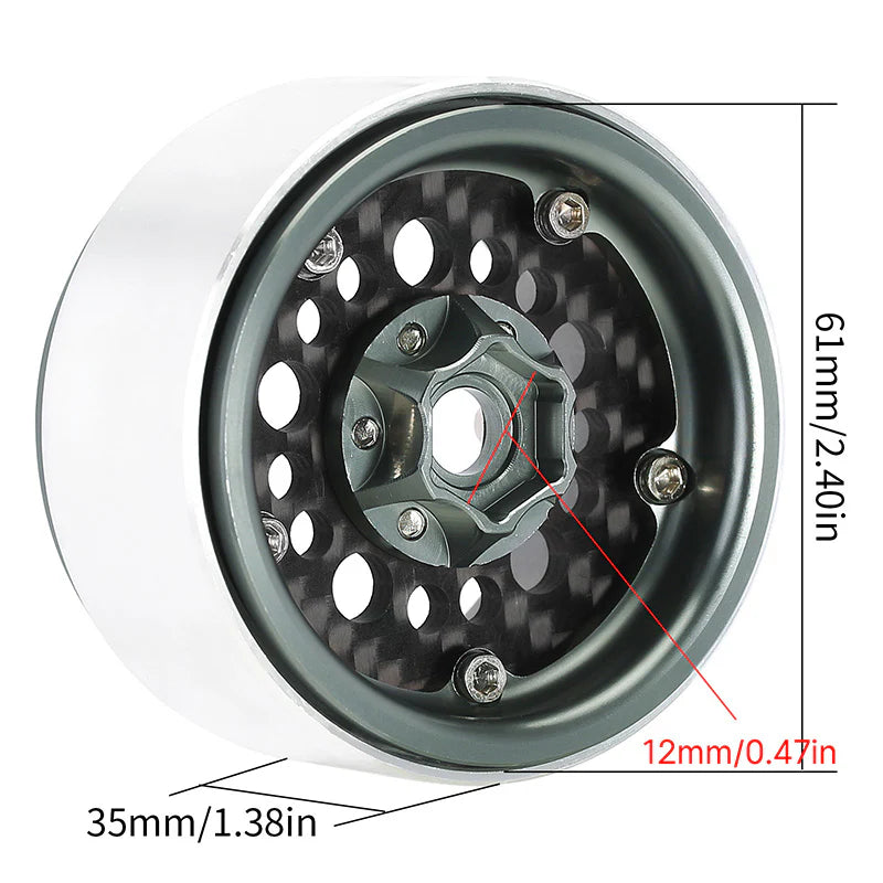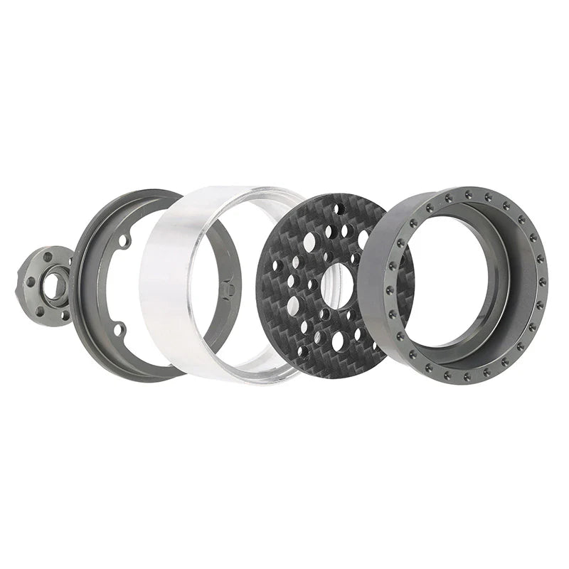 INJORA Deep Dish Offset -10mm Carbon Fiber Aluminum 2.2" Beadlock Wheel Rim for 1/10 RC Crawler Car (W2253)