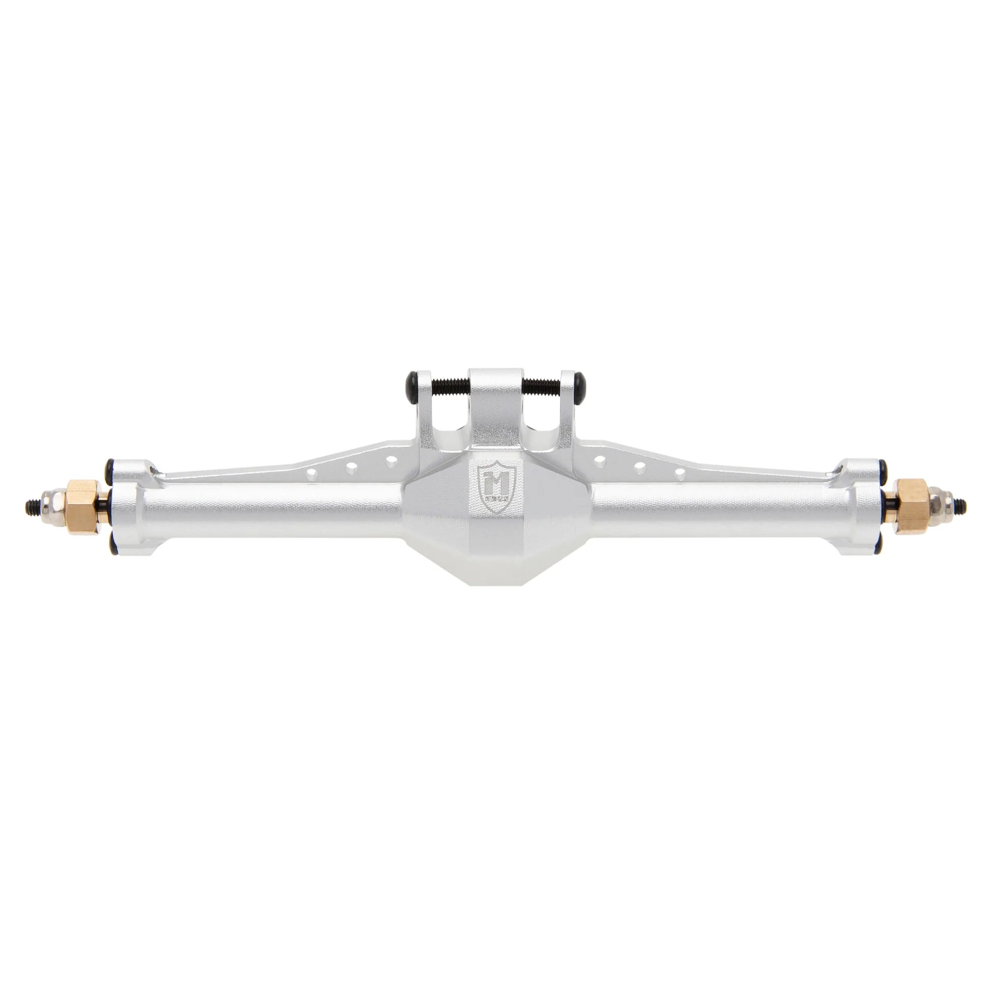 - Brass front axle: The axle housing, steering knuckles, and diff cover are brass. The weight is 123g.